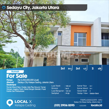 Rumah Brand New, Cluster, Ada Play Ground, Taman Dengan Jogging Track, Dekat Dengan Sekolah, Pusat Kuliner Dan Perkantoran For Sale - Jual Rumah Sedayu City Kelapa Gading, Jakarta Utara Harga. Rp 5,450,000,000 (Jual) Deskripsi Properti. Rumah Brand New, Cluster, Ada Play Ground, Taman Dengan Jogging Track, Dekat Dengan Sekolah, Pusat Kuliner Dan Perkantoran Luas Tanah. 138 m2 Dimensi. 9x15 Luas Bangunan. 142 m2 Sertipikat. PPJB Kamar Tidur. 3+1 Kamar Mandi. 3+1 Garasi Mobil. 2 Hadap / View. Selatan-Barat LOCAL X Kelapa Gading ******** ⓪②① ②⑨⓪⑥ ⑧⑤⑨⑤ P3KPG-0000xxxx-WN-J