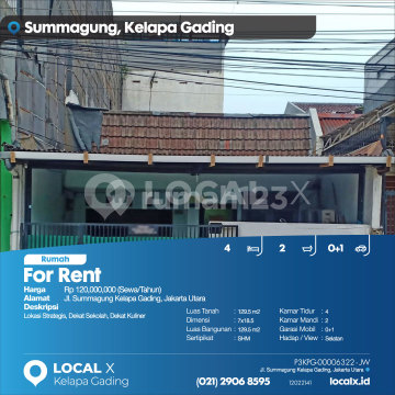 Lokasi Strategis, Dekat Sekolah, Dekat Kuliner For Rent - Sewa Rumah Summagung Kelapa Gading, Jakarta Utara Harga. Rp 12000xxxxSewa/Tahun) Deskripsi Properti. Lokasi Strategis, Dekat Sekolah, Dekat Kuliner Luas Tanah. 129.5 m2 Dimensi. 7x18.5 Luas Bangunan. 129.5 m2 Sertipikat. SHM Kamar Tidur. 4 Kamar Mandi. 2 Garasi Mobil. 0+1 Hadap / View. Selatan LOCAL X Kelapa Gading ******** ⓪②① ②⑨⓪⑥ ⑧⑤⑨⑤ P3KPG-0000xxxx-JW-S