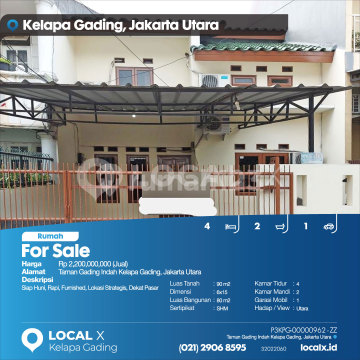 Siap Huni, Rapi, Furnished, Lokasi Strategis, Dekat Pasar For Sale - Jual Rumah Taman Gading Indah Kelapa Gading, Jakarta Utara Harga. Rp 220000xxxxJual) Deskripsi Properti. Siap Huni, Rapi, Furnished, Lokasi Strategis, Dekat Pasar Luas Tanah. 90 m2 Dimensi. 6x15 Luas Bangunan. 80 m2 Sertipikat. SHM Kamar Tidur. 4 Kamar Mandi. 2 Garasi Mobil. 1 Hadap / View. Utara LOCAL X Kelapa Gading ******** ⓪②① ②⑨⓪⑥ ⑧⑤⑨⑤ P3KPG-0000xxxx-ZZ-J