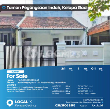 Rumah Soap Huni, Lokasi Strategis, Lingkungan Cluster, Security 24 Jam, Dekat RS, Pusat Belanja, Kantor Pemerintah Dan Swasta For Sale - Jual Rumah Taman Pegangsaan Indah Kelapa Gading, Jakarta Utara Harga. Rp 190000xxxxJual) Deskripsi Properti. Rumah Soap Huni, Lokasi Strategis, Lingkungan Cluster, Security 24 Jam, Dekat RS, Pusat Belanja, Kantor Pemerintah Dan Swasta Luas Tanah. 96 m2 Dimensi. 6x16 Luas Bangunan. 90 m2 Sertipikat. SHM Kamar Tidur. 2+1 Kamar Mandi. 1 Garasi Mobil. 0+1 Hadap / View. Selatan LOCAL X Kelapa Gading ******** ⓪②① ②⑨⓪⑥ ⑧⑤⑨⑤ P3KPG-0000xxxx-ZZ-J