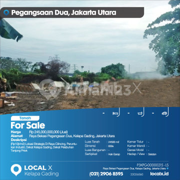 (Rp10jt/m2) Lokasi Strategis Di Raya Cilincing, Peruntukan Industri, Dekat Kelapa Gading, Dekat Pelabuhan Tanjung Priok For Sale - Jual Tanah Raya Bekasi Pegangsaan Dua, Kelapa Gading, Jakarta Utara Harga. Rp 245,000,000,000 (Jual) Deskripsi Properti. (Rp10jt/m2) Lokasi Strategis Di Raya Cilincing, Peruntukan Industri, Dekat Kelapa Gading, Dekat Pelabuhan Tanjung Priok Luas Tanah. 24500 m2 Dimensi. 639x Luas Bangunan. 24500 m2 Sertipikat. Hak Garap Kamar Tidur. - Kamar Mandi. - Garasi Mobil. - Hadap / View. Selatan LOCAL X Kelapa Gading ******** ⓪②① ②⑨⓪⑥ ⑧⑤⑨⑤ P3KPG-0000xxxx-LS-J