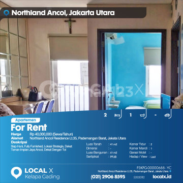 Siap Huni, Fully Furnished, Lokasi Strategis, Dekat Taman Impian Jaya Ancol, Dekat Dengan Tol For Rent - Sewa Apartemen Northland Ancol Residence Lt.35, Pademangan Barat, Jakata Utara Harga. Rp 40,000,000 (Sewa/Tahun) Deskripsi Properti. Siap Huni, Fully Furnished, Lokasi Strategis, Dekat Taman Impian Jaya Ancol, Dekat Dengan Tol Luas Tanah. 41 m2 Dimensi. - Luas Bangunan. 41 m2 Sertipikat. PPJB Kamar Tidur. 2 Kamar Mandi. 1 Garasi Mobil. - Hadap / View. Laut LOCAL X Kelapa Gading ******** ⓪②① ②⑨⓪⑥ ⑧⑤⑨⑤ P3KPG-0000xxxx-YC-S