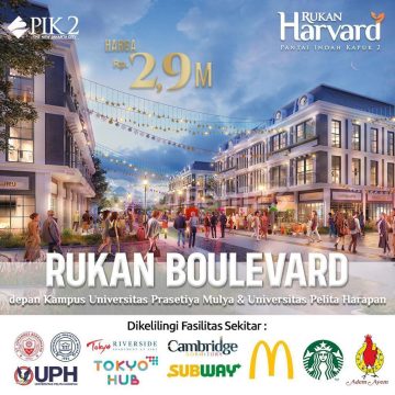 DIJUAL / DISEWA Lokasi strategis dekat sekolah dan Universitas Ruko Harvard PIK2 3 lantai Harga mulai 95jt/tahun