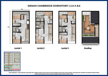 Spesifikasi Jumlah Lantai 3 + Roof top Kondisi Properti Baru Kamar Tidur 7 Kamar Mandi 4 Luas Tanah 38 m2 (4,5X8,5) Luas Bangunan 130 m2 Carport 1 DORMITORY SPEC: * Luas Tanah: 38,25 m2 / 4.5 x 8.5 * Luas Bangunan: 130 m2 * 3 Lantai + Rooftop * 7 Kamar Tidur FURNISHED !! * 4 Kamar Mandi * Sharing Kitchen lantai 1 * Rooftop Lounge * Listrik 4.400 watt FULL FURNISHED LIST: *Kitchen Set Cabinet *Bed (every room) *Working Desk (every room) *Working Chair (every room) *Wardrobe (every room) *AC