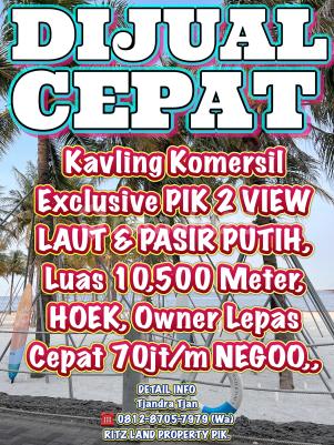DIJUAL KAVLING STRATEGIS KOMERSIL VIEW LAUT DAN PASIR PUTIH PIK 2. DIJUAL CEPAT KAVLING KOMERSIL VIEW LAUT PIK 2. Dijual cepat KAVLING KOMERSIL PIK 2: * Luas 10,500 Meter, * View LAUT DAN PASIR PUTIH, * LOKASI STRATEGIS DAN PRIME KRN BERADA TERDEPAN PIK 2, DEKAT ALOHA, INTERCHANGE TOL PIK 2, LAND’s END, DLL,, * COCOK UTK BANGUN GEDUNG, HOTEL, SHOWROOM, OFFICE, MINI MALL, DLL,, * Bebas PANTANGAN * OWNER MAU LEPAS CEPAT 70jt/m NEGOO CONTACT Tjandra Tjan ☎️ 0812xxxxxxxxWa) SPESIALIS GOLF ISLAND & PIK. RITZ LAND PROPERTY PIK.