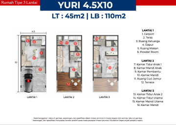 DIJUAL OSAKA RESIDENCES PIK2 TYPE YURI UKURAN 4.5x10M LUAS TANAH : 45 M2 LUAS BANGUNAN : 110 M2 3 LANTAI 3+1 KAMAR TIDUR 3+1 KAMAR MANDI 1 CARPORT ADA TERAS BERLOKASI DIKAWASAN PIK2 DEKAT DENGAN INTERCHANGE PIK2 & GREENBELT SELANGKAH MENUJU RUKAN EURO ASIA & RUKAN OSAKA DEKAT DENGAN RUMAH SAKIT HERMINA KONSEP RUMAH TERAS DENGAN BALKON LUAS HARGA JUAL : 2.41M CICILAN 36X : 2.66M (CICILAN 1-35 73.3JT PER BLN, CICILAN 36 72.5JT PER BLN) CICILAN 60X : 2.97M (CICILAN 1-59 49.2JT PER BLN, CICILAN 60 43.2JT PER BLN) BALLON PAYMENT 24X : 2.81M (CICILAN 1-24 18JT PER BLN, PELUNASAN 2.36M) MORE INFO : pertanyaan dan survey langsung whatsapp click disini : ******** IRFAN KUSUMA HEAD OF MARKETING LOT PROPERTY CALL/WA :0812xxxxxxxx IG : irfanlotpropertypik EMAIL :Irfanlotproperty@******** SPECIALIST PIK2,GOLF ISLAND DAN GOLD COAST BUY - SELL - RENT