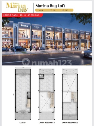 Ruko Marina Bay Loft PIK 2 6x20 2Lt+Mezanin Bisa Gandeng/Satuan Disewakan ruko siap pakai termurah dan cuan dI pik 2 extension Bisa gandeng dengan ukuran besar. Menghadap langsung ke jalan raya dan pusat lalu lintas Bangunan : 2 Lantai dan mezzanine Luas Tanah : 120m2 (6x20) Luas Bangunan : 212m2 Kamar Mandi : 2 Carport : 2 Air : WTP Listrik : 4400 watt Kondisi : Unfurnished Sertifikat : PPJB Harga Sewa : 150jt/tahun (NETT exclude pajak) More info : Yoana HP & WA: 0813xxxxxxxx Call Center : 0877xxxxxxxx RE/MAX Premier PIK *Specialist area PIK, Golf Island, Ebony Island, PIK 2, PIK 2 Extention* #Bisa komunikasi dalam Bahasa Mandarin DV