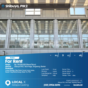 Lokasi Strategis, Siap Pakai, Cocok Untuk Usaha, Daerah Yang Berkembang, Akses Tol, PIK2 For Rent - Sewa Ruko Shibuya PIK2, Teluk Naga, Tangerang, Banten Harga. Rp 130,000,000 (Sewa/Tahun) Deskripsi Properti. Lokasi Strategis, Siap Pakai, Cocok Untuk Usaha, Daerah Yang Berkembang, Akses Tol, PIK2 Luas Tanah. 72 m2 Dimensi. 4.5x16 Luas Bangunan. 216 m2 Sertipikat. HGB Kamar Tidur. - Kamar Mandi. 3 Garasi Mobil. - Hadap / View. Utara LOCAL X Kelapa Gading ******** ⓪②① ②⑨⓪⑥ ⑧⑤⑨⑤ P3KPG-0000xxxx-YC-S