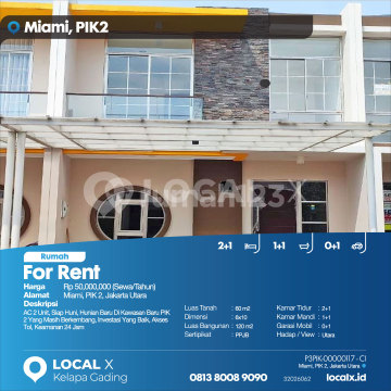 AC 2 Unit, Siap Huni, Hunian Baru Di Kawasan Baru PIK 2 Yang Masih Berkembang, Investasi Yang Baik, Akses Tol, Keamanan 24 Jam For Rent - Sewa Rumah Miami, PIK 2, Jakarta Utara Harga. Rp 5000xxxxSewa/Tahun) Deskripsi Properti. AC 2 Unit, Siap Huni, Hunian Baru Di Kawasan Baru PIK 2 Yang Masih Berkembang, Investasi Yang Baik, Akses Tol, Keamanan 24 Jam Luas Tanah. 60 m2 Dimensi. 6x10 Luas Bangunan. 120 m2 Sertipikat. PPJB Kamar Tidur. 2+1 Kamar Mandi. 1+1 Garasi Mobil. 0+1 Hadap / View. Utara LOCAL X Kelapa Gading ******** ⓪⑧①③⑧⓪⓪⑧⑨⓪⑨⓪ P3PIK-0000xxxx-CI-S