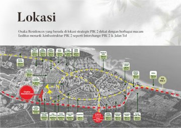 Hadirnya Rumah Teras Osaka yang berada di lokasi strategis PIK2 dekat dengan berbagai macam fasilitas menarik & Infrastruktur PIK2 seperti Interchange PIK2 & Jalan Tol. FASILITAS OSAKA RESIDENCES: - 200 meter ke Apartment Osaka dengan fasilitas lengkap (Kolam Renang, Gym, Lapangan Basket, Jogging track, dll) - 200 meter ke rumah sakit Hermina - 100 meter Rukan OSAKA EURO ASIA dengan banyaknya tenant usaha berkonsep Tematik dari 8 Negara berbeda baik dari Benua Asia maupun Eropa. Akan menjadi destinasi Pusat Pariwisata PIK2 setelah Pantjoran PIK - 400 meter ke Verde Sport Hub lapangan terbuka olahraga (sudah beroperasi) - 500 meter ke Green Belt seluas 60 hektare di PIK 2 - 1 KM Future Lotte Mall - 3 KM ke Pantai Pasir Putih PIK 2 - Future Osaka Market Pasar Bersih PIK 2 - Car Showroom by Eurokars Indonesia TIPE RUMAH: YUKA 2 Lantai Luas Tanah 6x10 = 60 m2 Luas Bangunan: 85 m2 2 kamar tidur 2 kamar mandi 2 mobil carport berkanopi HARGA START 2.6M-an BISA CICIL 60X !! Rumah sedang on progress bangun, cluster sudah ready INFO? LIAM 0821xxxxxxxx CALL & WA