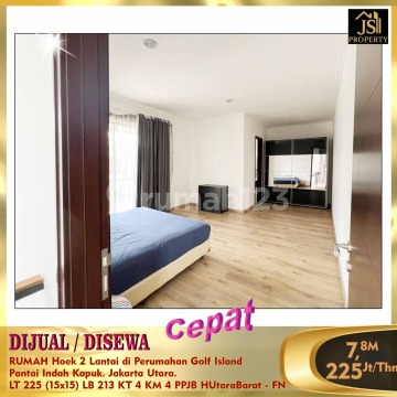 DIJUAL / DISEWAKAN RUMAH Hoek 2 Lantai di Perumahan Golf Island Pantai Indah Kapuk. Jakarta Utara. Rumah siap Huni, samping rumah ada Taman yg luas, Bebas Banjir , keamanan 24 jam , dekat akses Tol , Banyak Area Kuliner ,dekat Mall PIK Avenue. Luas Tanah 225 m² ( Hoek ) Ukuran Dimensi 15 x 15 m² Luas Bangunan 213 m² 2 Lantai Kamar Tidur 3 + 1 Kamar Mandi 3 + 1 Listrik 4400 Watt Air WTP Sertifikat : PPJB , Siap AJB ( sdh ada undangan untuk AJB dr developer ) Full Furnished Hadap Utara Dan Barat Harga 7,8M Nego Harga 450Jt / 2 Tahun