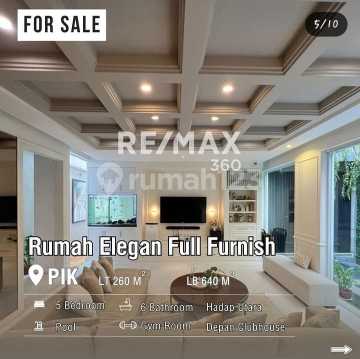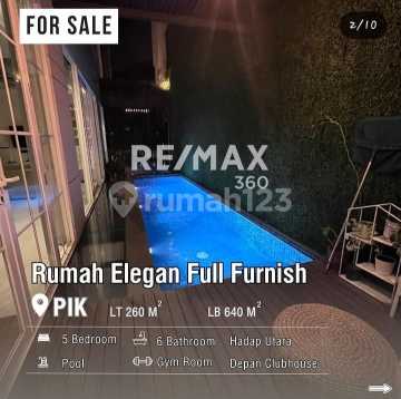 Dijual Rumah Mewah PIK Full Furnished uk10x26m2 Furnished Elegant at Jakarta Utara Dijual Rumah Mewah PIK Lt 260m2 (10x26m2) Lb -/+ 640m2 Surat PPJB 4+1 KT 4+1 KM 3,5 Lantai Air PAM 1 dapur kotor 1 dapur bersih 1 ruang gym Kolam renang + KM Open 14M Nego For more info and viewing this property do not hesitate to contact lina 0812602xxxx