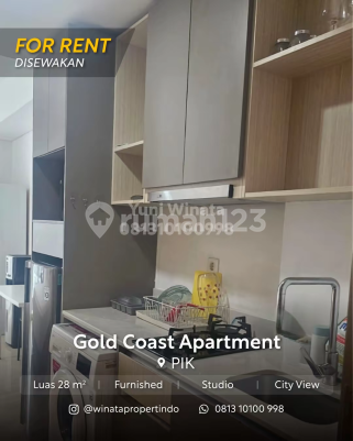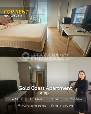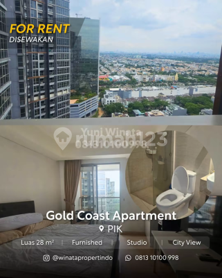 Disewakan unit gold coast pik jakarta utara luas 28m2 studio furnish bahama lt 26 view city harga 60 juta/th yuni 0813xxxxxxxx