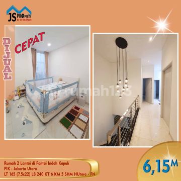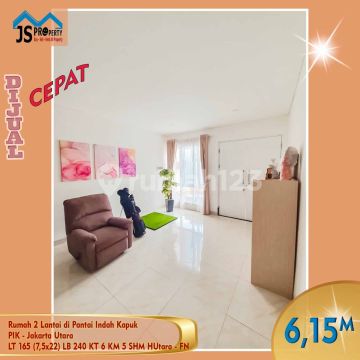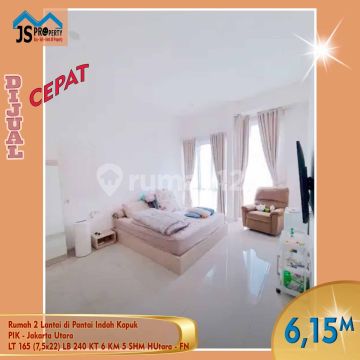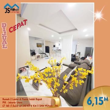 DIJUAL : Rumah 2 Lantai di Pantai Indah Kapuk PIK - Jakarta Utara LT 165 m² / 7,5 x 22 m² LB 240 m² 2 Lantai KT 5 + 1 KM 4 + 1 Listrik 5500 Watt Air WTP Semi Furnished SHM Hadap Utara Harga 6,150M Nego