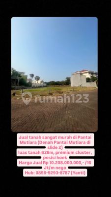 Jual tanah sangat murah di Pantai Mutiara (Denah Pantai Mutiara di slide 2) luas tanah 638m, premium cluster, posisi hoek Harga Jual Rp 102080xxxxxxx Jt/m nego Hub: 08569293xxxxYanti)