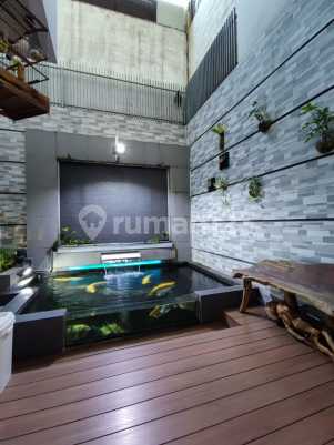 Luas Tanah: 122 Luas Bangunan: 104 Lantai: 2 KT: 3 + 1 KM: 4 Surat: SHM Hadap: Timur Air: PAM Furnished: Full Furnished Interior Mewah + elektronik all in AC: 4 buah Carport: 2 mobil - Tangga & Lantai 2 Full Parket Bambu - Kolam ikan 3×2m dgn filter kolam - Kanopi Carport Full Alderon - kanopi belakang full sampe kolam belakang - bak penampungan air + toren atas - water heater untuk kamar mandi lantai 2 - full CCTV 8 kamera - audio karaoke di living room - internet full Lt bawah n atas