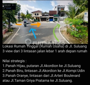 Rumah usaha strategis komersil area terbuka ramai Dilewati angkot Jak lingko, dekat berbagai sekolah TK SD SMP SMA pasar dll Luas tanah 114m (6x19) Lb 200m 2 lantai Lantai 1 : Garasi mobil Ruang usaha (disewa pegadaian dr 2008) Ruang tamu Dapur + ruang serbaguna Ruang makan 1 kamar tdr utama + kamar mandi dalam Ruang cuci Tangga beton ke lantai 2 Lantai 2: Teras atas 6x2 Ruang keluarga, ruang belajar 4 kamar tdr 1 kamar mandi Teras belakang area jemur pakaian 2200watt (rumah) 2200watt (ruang usaha) PAM & pompa listrik IndiHome, biznet, First Media Sdh tinggi dr jalan jd bebas banjir SHM, PBB, IMB Hadap timur laut Seni furnish