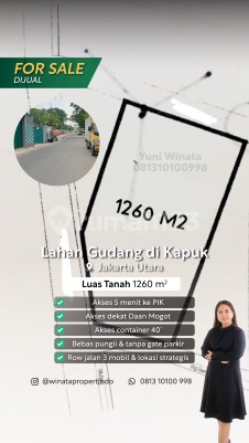 Dijual lahan industri gudang di jakarta luas tanah 1260 m2 shm akses container 40' pinggir jalan harga 11.6M nego yuni 0813xxxxxxxx