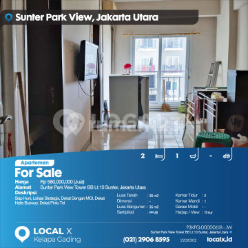 Siap Huni, Lokasi Strategis, Dekat Dengan MOI, Dekat Halte Busway, Dekat Pintu Tol For Sale - Jual Apartemen Sunter Park View Tower BB Lt.10 Sunter, Jakarta Utara Harga. Rp 58000xxxxJual) Deskripsi Properti. Siap Huni, Lokasi Strategis, Dekat Dengan MOI, Dekat Halte Busway, Dekat Pintu Tol Luas Tanah. 35 m2 Dimensi. - Luas Bangunan. 35 m2 Sertipikat. PPJB Kamar Tidur. 2 Kamar Mandi. 1 Garasi Mobil. - Hadap / View. Timur LOCAL X Kelapa Gading ******** ⓪②① ②⑨⓪⑥ ⑧⑤⑨⑤ P3KPG-0000xxxx-JW-J