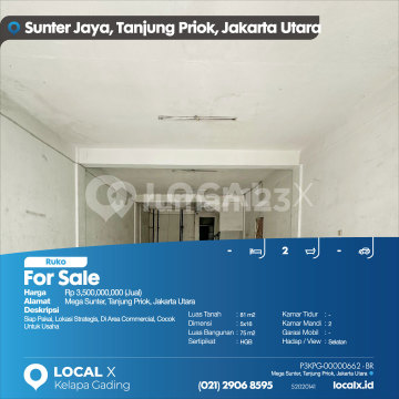 Siap Pakai, Lokasi Strategis, Di Area Commercial, Cocok Untuk Usaha For Sale - Jual Ruko Mega Sunter, Tanjung Priok, Jakarta Utara Harga. Rp 350000xxxxJual) Deskripsi Properti. Siap Pakai, Lokasi Strategis, Di Area Commercial, Cocok Untuk Usaha Luas Tanah. 81 m2 Dimensi. 5x16 Luas Bangunan. 75 m2 Sertipikat. HGB Kamar Tidur. - Kamar Mandi. 2 Garasi Mobil. - Hadap / View. Selatan LOCAL X Kelapa Gading ******** 0212906xxxx P3KPG-0000xxxx-BR-J