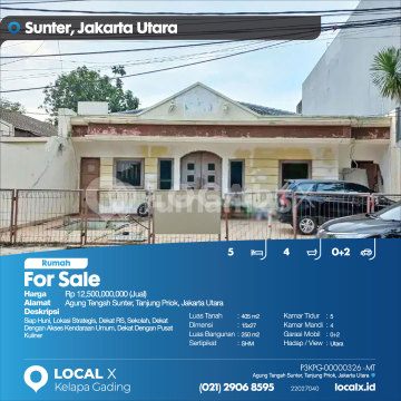 Siap Huni, Lokasi Strategis, Dekat RS, Sekolah, Dekat Dengan Akses Kendaraan Umum, Dekat Dengan Pusat Kuliner For Sale - Jual Rumah Agung Tengah Sunter, Tanjung Priok, Jakarta Utara Harga. Rp 12,500,000,000 (Jual) Deskripsi Properti. Siap Huni, Lokasi Strategis, Dekat RS, Sekolah, Dekat Dengan Akses Kendaraan Umum, Dekat Dengan Pusat Kuliner Luas Tanah. 405 m2 Dimensi. 15x27 Luas Bangunan. 250 m2 Sertipikat. SHM Kamar Tidur. 5 Kamar Mandi. 4 Garasi Mobil. 0+2 Hadap / View. Utara LOCAL X Kelapa Gading ******** ⓪②① ②⑨⓪⑥ ⑧⑤⑨⑤ Whatsapp/Call. Mariana - ⓪⑧①⑥④⑧③⓪⑤⑤⓪ P3KPG-0000xxxx-MT-J