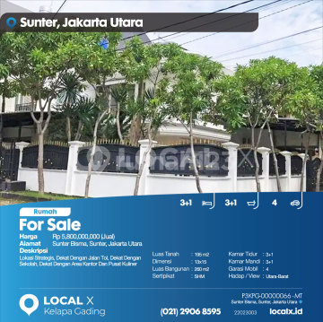 Lokasi Strategis, Dekat Dengan Jalan Tol, Dekat Dengan Sekolah, Dekat Dengan Area Kantor Dan Pusat Kuliner For Sale - Jual Rumah Sunter Bisma, Sunter, Jakarta Utara Harga. Rp 580000xxxxJual) Deskripsi Properti. Lokasi Strategis, Dekat Dengan Jalan Tol, Dekat Dengan Sekolah, Dekat Dengan Area Kantor Dan Pusat Kuliner Luas Tanah. 195 m2 Dimensi. 13x15 Luas Bangunan. 260 m2 Sertipikat. SHM Kamar Tidur. 3+1 Kamar Mandi. 3+1 Garasi Mobil. 4 Hadap / View. Utara-Barat LOCAL X Kelapa Gading ******** ⓪②① ②⑨⓪⑥ ⑧⑤⑨⑤ Whatsapp/Call. Mariana - ⓪⑧①⑥④⑧③⓪⑤⑤⓪ P3KPG-0000xxxx-MT-J