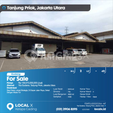 Siap Pakai, Lokasi Strategis, Di Depan Jalan Raya, Dekat Dengan Akses Tol For Sale - Jual Gudang Yos Sudarso, Tanjung Priok, Jakarta Utara Harga. Rp 159,570,000,000 (Jual) Deskripsi Properti. Siap Pakai, Lokasi Strategis, Di Depan Jalan Raya, Dekat Dengan Akses Tol Luas Tanah. 5319 m2 Dimensi. 70x Luas Bangunan. 3632 m2 Sertipikat. HGB Kamar Tidur. - Kamar Mandi. 2 Garasi Mobil. - Hadap / View. Barat LOCAL X Kelapa Gading ******** ⓪②① ②⑨⓪⑥ ⑧⑤⑨⑤ Whatsapp/Call. Mariana - ⓪⑧①⑥④⑧③⓪⑤⑤⓪ P3KPG-0000xxxx-MT-J