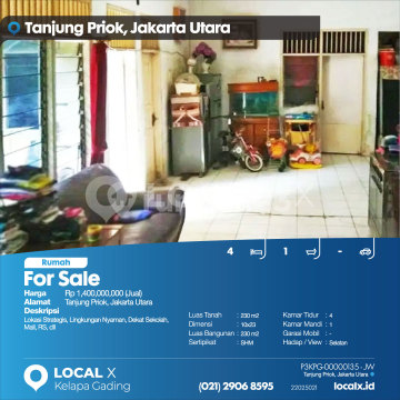 Lokasi Strategis, Lingkungan Nyaman, Dekat Sekolah, Mall, RS, dll For Sale - Jual Rumah Tanjung Priok, Jakarta Utara Harga. Rp 140000xxxxJual) Deskripsi Properti. Lokasi Strategis, Lingkungan Nyaman, Dekat Sekolah, Mall, RS, dll Luas Tanah. 230 m2 Dimensi. 10x23 Luas Bangunan. 230 m2 Sertipikat. SHM Kamar Tidur. 4 Kamar Mandi. 1 Garasi Mobil. - Hadap / View. Selatan LOCAL X Kelapa Gading ******** ⓪②① ②⑨⓪⑥ ⑧⑤⑨⑤ P3KPG-0000xxxx-JW-J