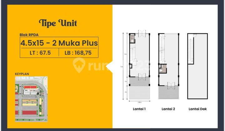 Rumah123 adalah situs teknologi jual beli dan sewa properti terdepan di Indonesia, yang hadir sejak tahun 2007 dan telah melayani jutaan orang di Indonesia. Rumah123 senantiasa berkomitmen untuk membuat pengalaman 'Jual Beli dan Sewa Properti Lebih Mudah' dengan dukungan dari developer terkemuka serta agen profesional.