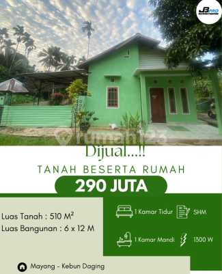 ‼️DIJUAL‼️ Rumah + tanah Luas tanah : 510 M² Luas bangunan : 6 x 12 M SHM Kamar Tidur : 1 Kamar Mandi : 1 Listrik : 1300W