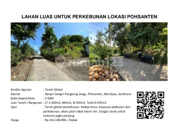 Tanah Luas Murah Di Pohsanten, Mendoyo - Jembrana, Cocok Untuk Perkebunan Dan Investasi Jangka Panjang Spesifikasi : Luas Tanah : 6935m² Akses Jalan Rabat Beton 3M SHM Harga 416 Juta Nego