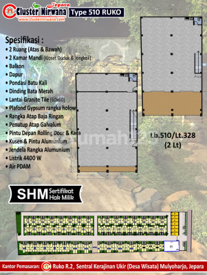 RUKO ini berada di CLUSTER NIRWANA JEPARA [CNJ] 'Real Estate Elite di Pusat Kota Jepara' yg cocok untuk kuliner, pusat jajanan, apotik, toko buah, toko HP, kantor dll. Ruko ini ber-lokasi Premium yang berpenduduk padat di Desa Wisata 'Sentra Kerajinan Ukir & Patung Mulyoharjo' Jepara dimana wilayah ini sbg DESTINASI WISATA baik Turis Asing maupun Domestik. • LT 80-an m2 / LB 96 m2 • 2 Lt (Studio) • 2 KM • Dapur • Balkon • Teras • Halaman Parkir • PLN 2200W • Air PDAM ✅ Ready Stock ✅ Bebas Banjiiir ✅ Sertifikat Hak Milik (SHM) dg IMB/PGB Menempati Lahan seluas 1.2 Ha dgn Total Unit 8 Ruko & 82 Rumah (berbagai type). ✅ Konsep Cluster dg Security System One Gate System, Pagar Keliling, Pintu Gerbang, Pos Satpam & CCTV. ✅ Lingkungan Aman, Nyaman, Tertata Rapi & Asri dgn Ruang Terbuka Hijau Menyatunya Rumah Tinggal dgn taman & ruang terbuka hijau shg menjadi asri serta adanya Balai Warga dan Taman Bermain sbg tempat berinteraksi sesama Warga shg tercipta ‘hunian & tempat bisnis yg madani’. ✅ Akses Dekat dg: Pusat Bisnis, Pusat Pemerintahan/Kabupaten, Alun-Alun, Masjid Agung, Mall SJC, Pasar, GOR Bumi Kartini, Kawasan Industri, Universitas, Tempat Wisata Pantai Kartini & Pantai Bandengan serta Pelabuhan Penyeberangan ke Karimunjawa. ✅ Fasilitas: Masjid, Balai Warga, Taman Selvie, Lampu Jalan & Taman, Jalan Paving & Selokan (lbr.7 m), PLN, PDAM & Pertokoan dlm satu komplek. ✅ Tersedia jg Ruko dan Rumah berbagai type: > Ruko Type 510 (2 Lt) JANNAH (510/360) 2 KM > Rumah Type 40 CAELUM (40/74,8) 2 KT & 1 KM > Rumah Type 46 CIELO (46/84) 2 KT & 1 KM > Rumah Type 54 HEAVEN (54/90) 3 KT & 2 KM > Rumah Type 65 FIRDAUS III (65/110) 3 KT & 2 KM > Rumah Type 92 (2 Lt) FIRDAUS II (92/110) 4 KT & 3 KM > Rumah Type 100 (2 Lt) FIRDAUS I (100/120) 4 KT & 3 KM Dgn Lokasi ‘Premium’ & mengusung konsep ‘One Stop Living’ yang memadukan kawasan residensial yg aman, nyaman dan asri dgn kawasan komersial, maka CNJ layak dinobatkan sbg Hunian & Tempat Bisnis ter-Exclusive di Kota Jepara. ➡ Trust and Customer Satisfaction is Our Business Goal ➡ Just See, Check & Feel It ~ We are Different
