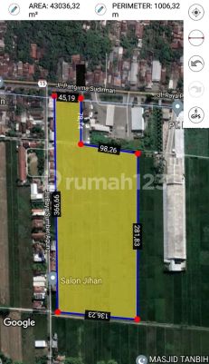 Di jual tanah industri Luas 4,3 ha, Lebar 45 meter, Surat SHM ( 1 pemilik ), Harga 1.1 juta/meter, Zona Industri, Akses jalan propinsi, Jarak lokasi ke exit tol 1,5 km hub 0812xxxxxxxx