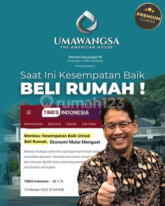 *MOMEN TERBAIK BELI RUMAH ADA SEKARANG!* Menkeu sudah tegaskan ekonomi sedang menguat, permintaan rumah naik. Jangan tunggu harga ikut naik!! *UMAWANGSA - The American House* Lokasi paling depan - Sebelah Bravo DP 0% Subsidi KPR 1,5 JUTA x 12 bulan Langsung cek unit & booking sebelum kehabisan! DM atau klik chat sekarang