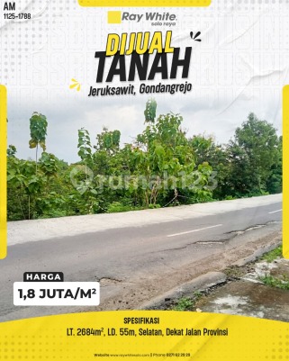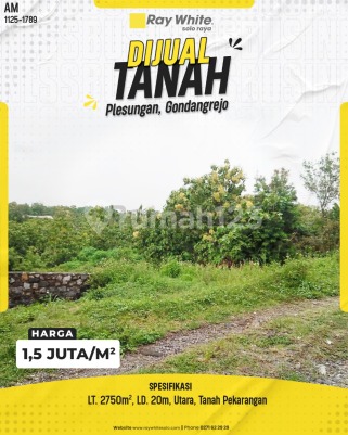 Dijual Tanah - Plesungan, Gondangrejo Harga: Rp 1,5 Juta/m² Tanah strategis dengan bentuk ideal dan akses jalan baik. Berada di kawasan berkembang dengan lingkungan sekitar perumahan, sangat cocok untuk investasi jangka panjang maupun pembangunan hunian. Spesifikasi: Luas Tanah: 2500 m² Lebar Depan: 45 m Hadap: Barat Tanah Tegal Lingkungan nyaman dan potensi nilai tanah terus meningkat.