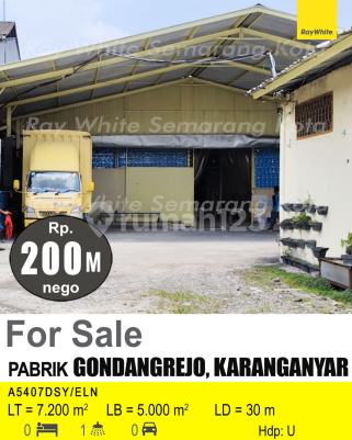 Pabrik di Gondangrejo. Miliki pabrik yang nyaman ini, dijual menawarkan lingkungan fasilitas yang lengkap, cocok untuk Anda yang menginginkan hunian nyaman. Spesifikasi Utama Properti: - Kamar Mandi: 1 - Sertifikat: SHM - Sertifikat Hak Milik - Kondisi Perabotan: Furnished Fitur unggulan: - Bisa KPR. - Siap Huni. - Bebas Banjir. - Sejuk. - Cocok Untuk Investasi. - Properti Bisa Nego. - Lokasi Strategis. Berlokasi di Gondangrejo, pabrik ini memberikan kemudahan akses ke berbagai fasilitas menarik. Dengan harga Rp. 200.000.xxx.000, anda bisa memiliki hunian premium yang sudah siap huni dan bersertifikat SHM - Sertifikat Hak Milik. Segera ambil kesempatan untuk menikmati investasi di kawasan Gondangrejo yang nyaman ini! Kontak segera untuk informasi lebih lanjut!