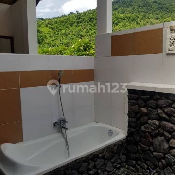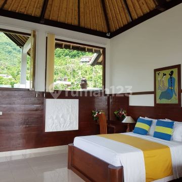 Dijual Villa Lokasi Strategis di Amed Karangasem Bali Spesifikasi : Luas tanah : 27,5 are (2.750 m2) Luas bangunan : 824 m2 9 kamar tidur, 6 ada AC 7 kamar mandi, 7 ada Air panas Restaurant dengan kapasitas 34 kursi Peralatan dapur sudah termasuk Kapasitas listrik 23000 watt Ada lahan parkir kendaraan motor, mobil Yoga shala Kolam renang Tempat meditasi Villa masih beroperasi Dengan tingkat hunian saat ini 80% Harga 18 Miliar
