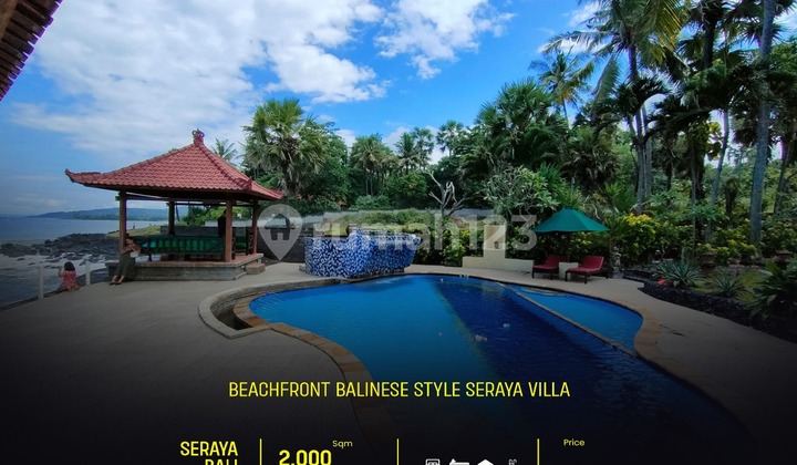 DIJUAL BEACHFRONT BALINESE STYLE SERAYA VILLA Spesifikasi: Luas Tanah 2.000 m² Luas Bangunan 550 m² 6 Bedroom 6 Bathroom Living Room Kitchen BIG Garden POOL Aesthetic GAZEBO Balinese Style Beachfront Lingkungan TENANG SHM IMB Dekat : *Jasri Bay Hideaway *Villa Campuhan *Mandala Beach Villa Harga CASH maupun via KPR ====================== Rp. 8.499.000.xxx NEGO ====================== Lokasi : Jl. Seraya, KARANGASEM - Bali Google maps : ********
