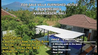 FOR SALE VILLA GUEST HOUSE FURNISHED ACTIVE LOCATION AMED BALI KARANGASEM,RUNNING WELL. 5 minutes walk to the beach, near shops, restaurants and ATMs, High occupancy rate, It can become a passive income venture, Up to five vehicles can reach your location, We also sell permits and a website. Location: Desa Purwakerti, Kecamatan Abang, Kab Karangasem, Provinsi Bali House Specifications : 4 bedroom + 4 room + 4 private kitchen active . 1 room + 1 bedroom staff 1 kitchen + 1 bedroom for public Land size : 500 m2 FREE HOLD Building size : 222 m2 Building level : 2 Internet: Yes Bathrooms: 6 Maid's Bathroom: 1 Storage Room: 1 Family Room: 1 Back Garden: 1 Electricity: 14,500 AC: Each room Ownership status : Freehold Surrounding environment ; 5 minutes walk to the beach, near shops, restaurants and ATMs, City center 30 minutes, central Amed 5 minutes Other Facilities and Benefits : The location is very strategic, comfortable, the area around the tourist location, access can be passed by car, the road to the location is good, suitable for residence or rent. Price : 5,5 Miliar (Rupiah IDR) Youtube : Solusi Griya Properti Instagram : solusi.griya.properti Facebook : Solusi Griya Properti Website : ******** Phone Fadli 08128400xxxx
