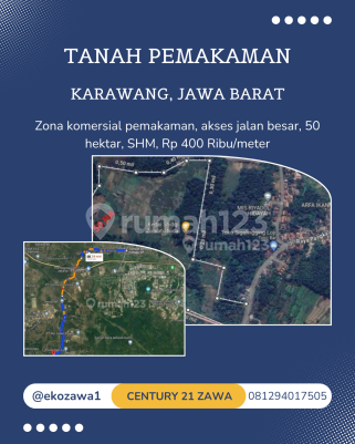 DIJUAL TANAH MURAH UNTUK PEMAKAMAN DI KARAWANG BARAT Lokasi : Karawang Barat - Jawa Barat Spec : * Luas Tanah 500.000 m² | 50 Ha * SHM * Zona Komersil Pemakaman * Akses Jalan Besar HARGA 400 Ribu / m² KHUSUS PEMBELI SERIUS silakan hubungi: Eko Pakpahan 08129401xxxx Century21 Zawa PIK #gudangforsale #pabrikforsale #gudangpabrikforsale #gudangdijual #pabrikdijual #tanahforsale #tanahdijual