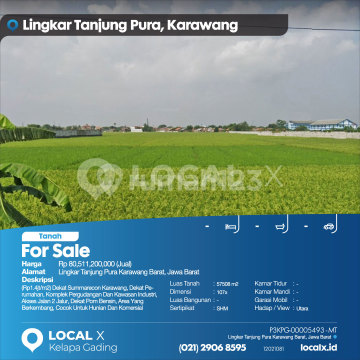 (Rp1.4jt/m2) Dekat Summarecon Karawang, Dekat Perumahan, Komplek Pergudangan Dan Kawasan Industri, Akses Jalan 2 Jalur, Dekat Pom Bensin, Area Yang Berkembang, Cocok Untuk Hunian Dan Komersial For Sale - Jual Tanah Lingkar Tanjung Pura Karawang Barat, Jawa Barat Harga. Rp 8051120xxxxJual) Deskripsi Properti. (Rp1.4jt/m2) Dekat Summarecon Karawang, Dekat Perumahan, Komplek Pergudangan Dan Kawasan Industri, Akses Jalan 2 Jalur, Dekat Pom Bensin, Area Yang Berkembang, Cocok Untuk Hunian Dan Komersial Luas Tanah. 57508 m2 Dimensi. 107x Luas Bangunan. 57508 m2 Sertipikat. SHM Kamar Tidur. - Kamar Mandi. - Garasi Mobil. - Hadap / View. Utara LOCAL X Kelapa Gading ******** ⓪②① ②⑨⓪⑥ ⑧⑤⑨⑤ Whatsapp/Call. Mariana - ⓪⑧①⑥④⑧③⓪⑤⑤⓪ P3KPG-0000xxxx-MT-J