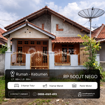 DIJUAL RUMAH TANPA PERANTARA Lokasi: Dusun Wetan Gili, RT 01 / RW 02 Kel. Wadasmalang, Kec. Karangsambung Kabupaten Kebumen (Tepat di Wetan/Pasar Wadasmalang) Spesifikasi Rumah: Luas Tanah / Bangunan: 88 / 88 m² (Full Bangunan) Bangunan 1 Lantai Kamar Tidur: 3 Kamar Mandi: 1 Legalitas: Sertifikat Hak Milik (SHM) ✅ Fasilitas: Ruang Tamu & Ruang Keluarga Dapur Carport (Akses Jalan Depan) Akses & Lingkungan: Tepat di Belakang Pasar Wadasmalang Dekat dengan Jalan Raya Utama Lokasi Strategis Jalur Perbatasan Wonosobo Lingkungan Ramai & Dekat Pusat Ekonomi (Pasar) Harga: Rp 50000xxxxNego) Info & Survey: 0888416xxxxLangsung Pemilik) Kode Listing: KBM-W88
