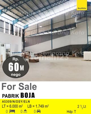 Pabrik di Boja, Kendal. For sale di wilayah yang nyaman. Dengan spesifikasinya adalah sebagai berikut: - Kamar Mandi: 1 - Sertifikat: SHM - Sertifikat Hak Milik - Kondisi Perabotan: Unfurnished Dan properti ini juga pilihan tepat karena: - Siap Huni. - Bebas Banjir. Keberadaan pabrik berikut terjangkau, hanya selangkah menuju berbagai fasilitas utama dan menarik. Dengan Rp. 60.000.000.xxx, anda dapat langsung dapatkan pabrik terbaik di daerah Boja ini.