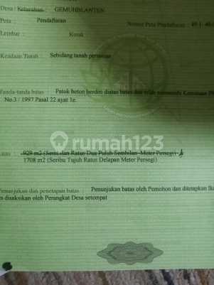 Jual murah tanah sawah produktif lokasi jl karangturi, gemuh, kabupaten kendal luas tanah 1.708m2 lebar depan 12 meter akses jalan cor bisa dilalui mobil dan truk sertifikat hak milik saat ini ditanami tembakau harga 500 juta nego