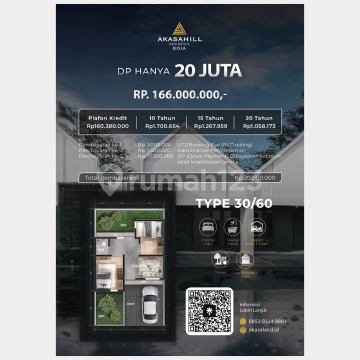 Akasahill Residence - Boja Jangan cuma mimpi punya rumah... SEKARANG waktunya wujudkan! Hanya dengan: ✅ DP 20 JUTA-an ✅ Cicilan mulai 1 JUTA-an/bulan Spesifikasi Rumah: ▪️ Type 30/60 ▪️2 kamar tidur dan 1 kamar mandi ▪️carport ▪️ Lantai full keramik ▪️ Kusen aluminium ▪️ Atap baja ringan & genteng gavalum berpasir ▪️ Dinding bata ringan + cat berkualitas ▪️ Air artetis ▪️ Listrik 1300W Jl. Kisobowono, Wonorejo, Tamanrejo, Kec. Boja, Kabupaten Kendal, Jawa TengahLokasi strategis Fasilitas Sekitar: - 1 menit dari Jl. Raya Boja & terminal - Dekat pasar, puskesmas, sekolah (SD-SMA/SMK) - 22 menit ke Unika Soegijapranata - 8 menit ke Charlie Hospital - 22 menit ke Uptown City Mall Langsung hubungi kami & booking hari ini! Akasahill Residence - Rumah Nyaman, Harga Aman.