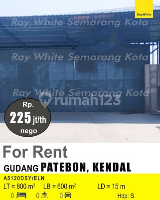 Gudang di Patebon Kendal, Kendal. Disewakan di wilayah yang asri. Dengan spesifikasinya adalah sebagai berikut: - Kamar Mandi: 1 - Sertifikat: SHM - Sertifikat Hak Milik - Daya Listrik: 2200 W - Kondisi Perabotan: Unfurnished Dan properti ini juga terdepan karena: - Siap Huni. - Bebas Banjir. - Dekat Akses Tol. - Dekat Pusat Perbelanjaan. - Lokasi dipusat kota. - Sejuk. - Cocok Untuk Investasi. - Properti Bisa Nego. - Lokasi Strategis. Keberadaan gudang berikut terjangkau, hanya selangkah menuju berbagai fasilitas utama dan menarik. Hanya Rp. 225.000.xxx/thn nego, anda bisa langsung dapatkan gudang strategis di daerah Kendal ini. Tersedia juga untuk rental period Yearly.