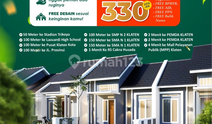 Rumah123 adalah situs teknologi jual beli dan sewa properti terdepan di Indonesia, yang hadir sejak tahun 2007 dan telah melayani jutaan orang di Indonesia. Rumah123 senantiasa berkomitmen untuk membuat pengalaman 'Jual Beli dan Sewa Properti Lebih Mudah' dengan dukungan dari developer terkemuka serta agen profesional.