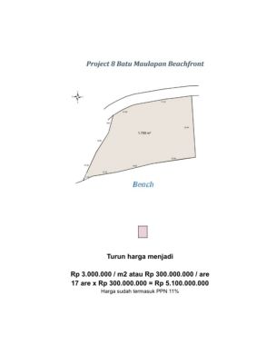 PROJECT 8 BATUMAULAPAN BEACH FRONT LAND Dijual cepat Proyek 8 Los Pantai, tanah di pinggir jalan utama , Los pantai ! Lokasi : desa Batununggul, pusat kota Nusa Penida, Bali. Cocok sekali untuk Villa /Resort / Hotel / Resto / Bar, dengan view laut lepas, gunung Agung & pantai berpasir putih. Akses langsung depan jalan raya utama Nusa Penida. 5 menit ke pelabuhan utama Sampalan 5 menit ke pusat kota 15 menit ke Pantai Atuh 10 menit ke Goa giri putri Dekat resto Warung Jukung Spesifikasi: Lokasi: Desa Batununggul, Nusa Penida, Klungkung Bali Luas tanah: 1.700 m2 Lebar depan: 50 x 45m View: los pantai, beachfront. Legalitas: Sertifikat SHM Kontur: Tanah rata Kondisi Terkini: Sudah selesai penataan lahan Lebar Akses: Aspal 6 meter Harga Tanah: 444jt/are bila dibeli global 1700m2, harga total: Rp 7,548,000,000 – SHM Cara Pembayaran: Cash Keras Booking fee 10% Pelunasan 7 hari setelah setelah booking fee dan AJB di notaris dilakukan 1 hari setelah pelunasan Biaya lain2: PPN 11% (hrg sdh termasuk PPN) BPHTB 5% Notaris 1% Investasi di tanah TIDAK BISA RUGI PASTI UNTUNG Kondisi sudah: Jalan aspal lebar 6m Tiang Listrik PLN dan PDAM sudah ada Owner nusped Hubungi marketing ekslusif kami wa.me/62878xxxxxxxx