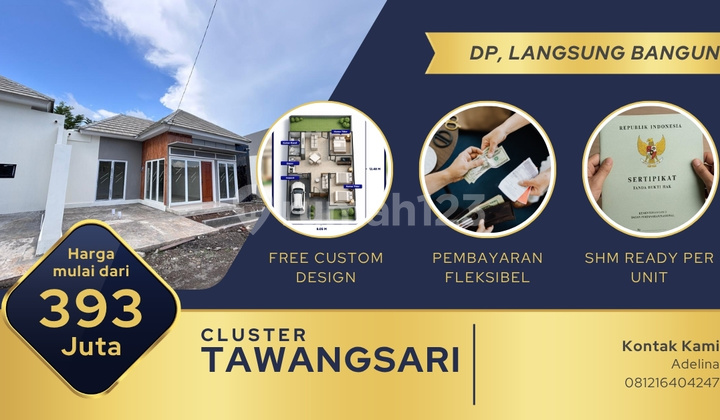 Rumah Siap Bangun di Tawangsari Kulon Progo, Custom Design Gratis Spesifikasi: - Luas Tanah 88 m2 - 101 m2 - Lebar Depan 8 m - Luas Bangunan 50 m2 - 2 Kamar Tidur - 1 Kamar Mandi Keuntungan: - Custom Layout Gratis - Cluster Satu Pintu - Akses 2 Mobil Simpangan - SHM Include PBG