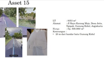 DIJUAL TANAH KAVLING SIAP BANGUN JALAN RAYA KARANG MAJO, GUNUNG KIDUL, YOGYAKARTA 20 METER DARI BANDAR BATU GUNUNG KIDUL LT : 9353 M2 HARGA : 500.000 M2 Tinneke #Aset